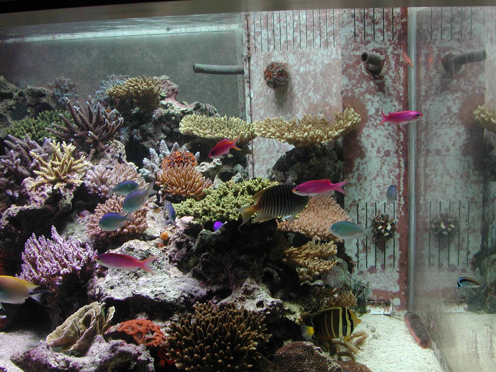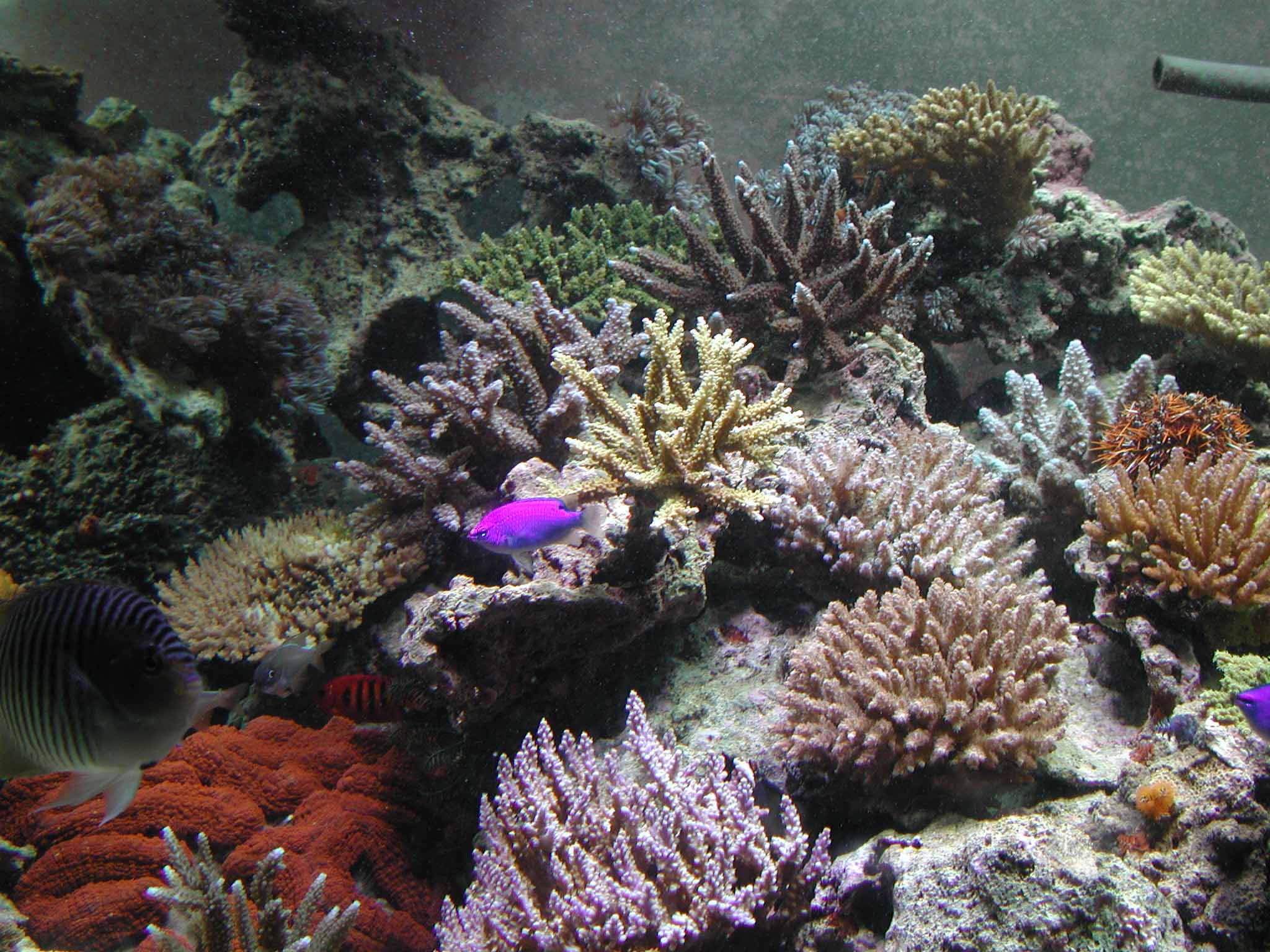 水槽の中はミドリイシが大半を占めているようだ。