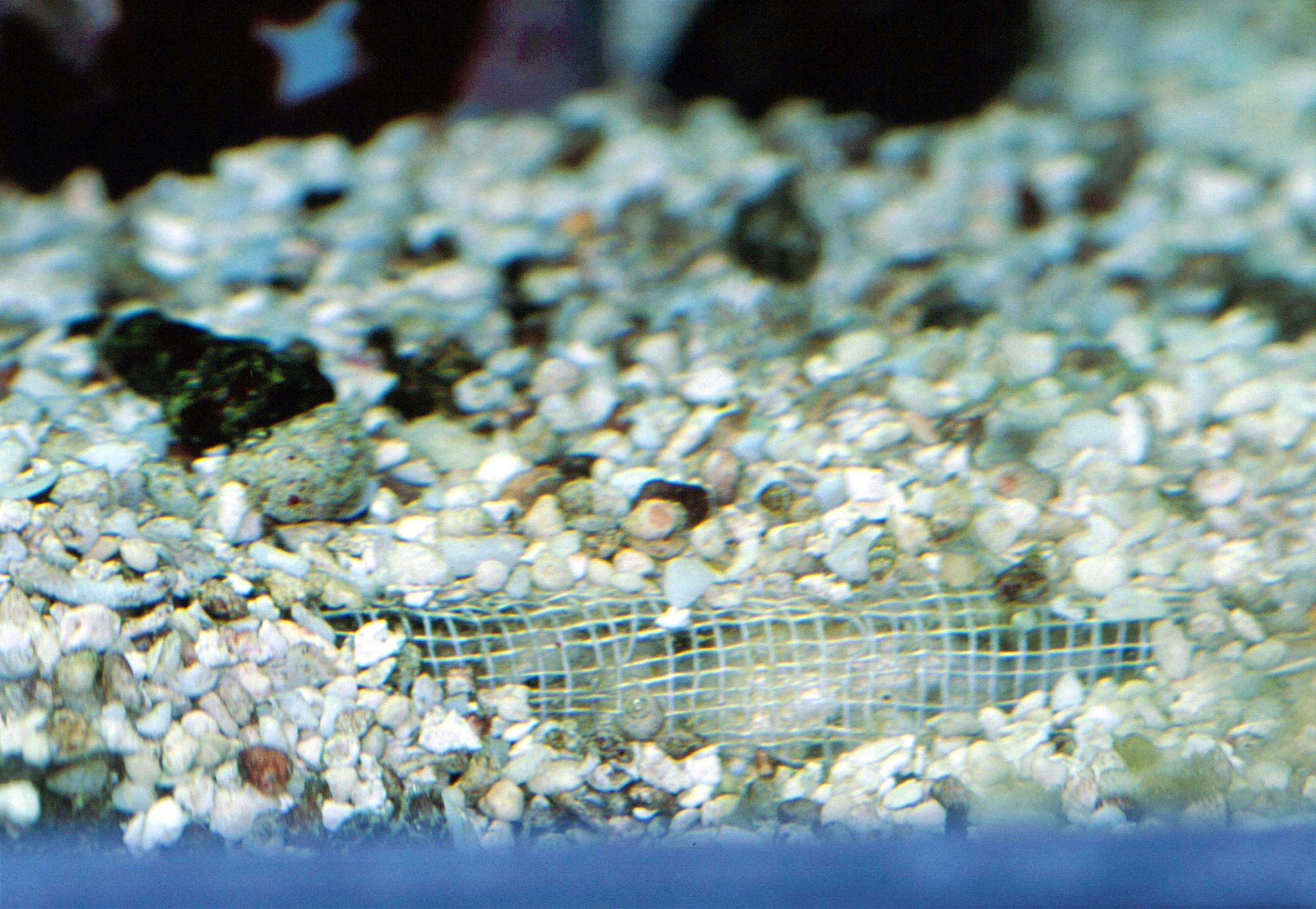 水槽の底面に網をひいてあります。