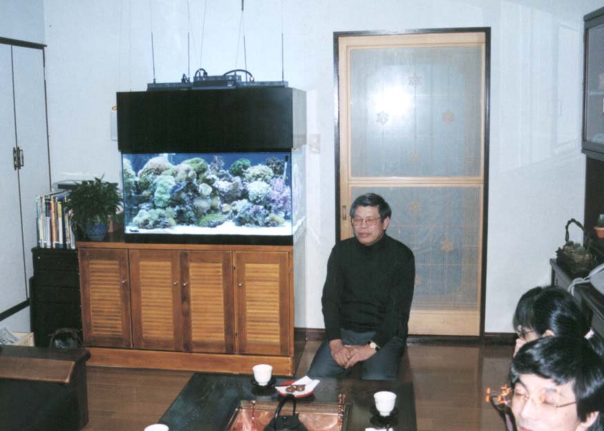 またこの水槽の特長としては夏場の高温対策として庭にある鯉の池に水槽の熱交換器がつながっているので水温の上昇には万全の対策をとっているようだ。