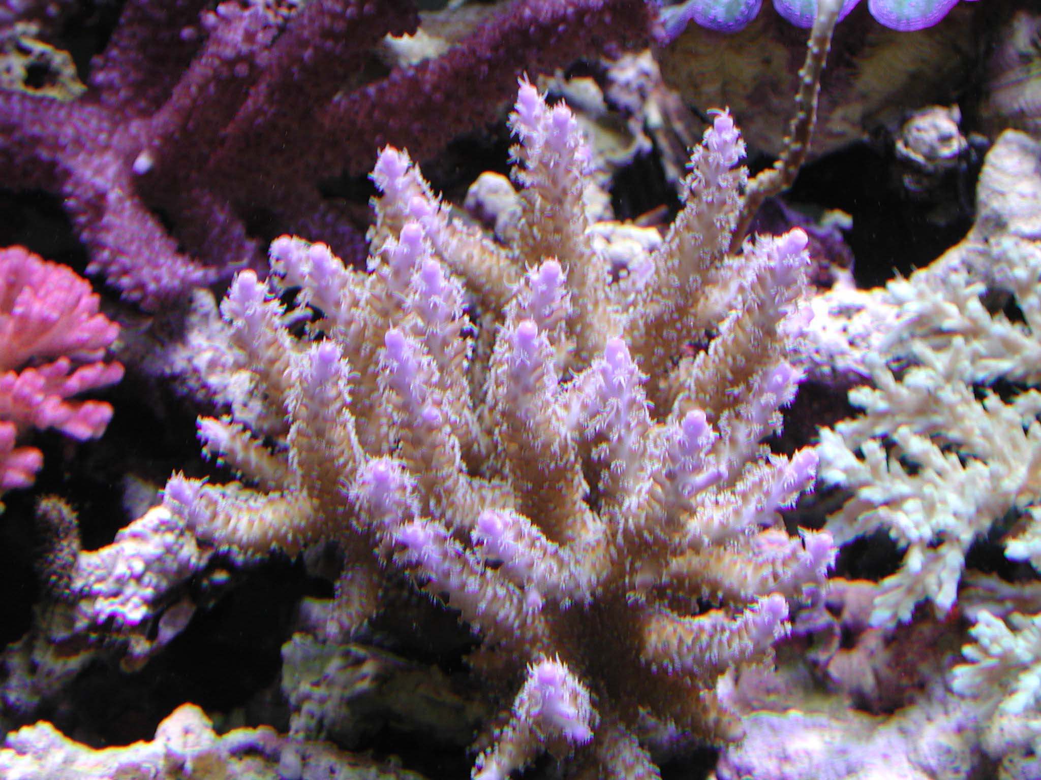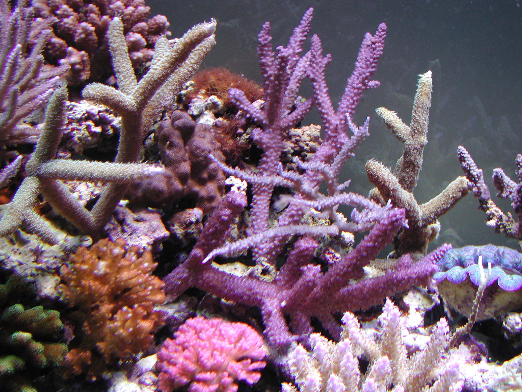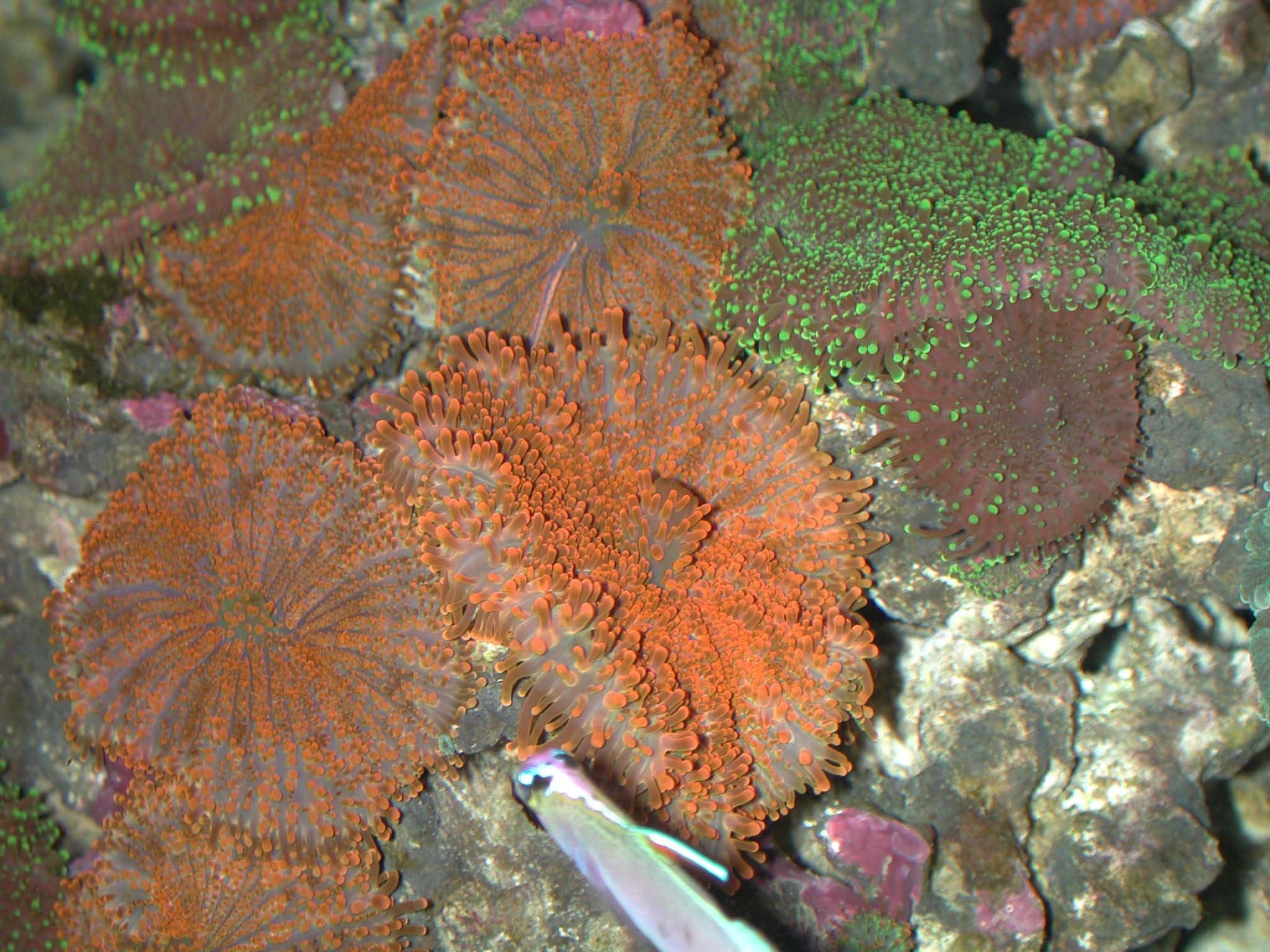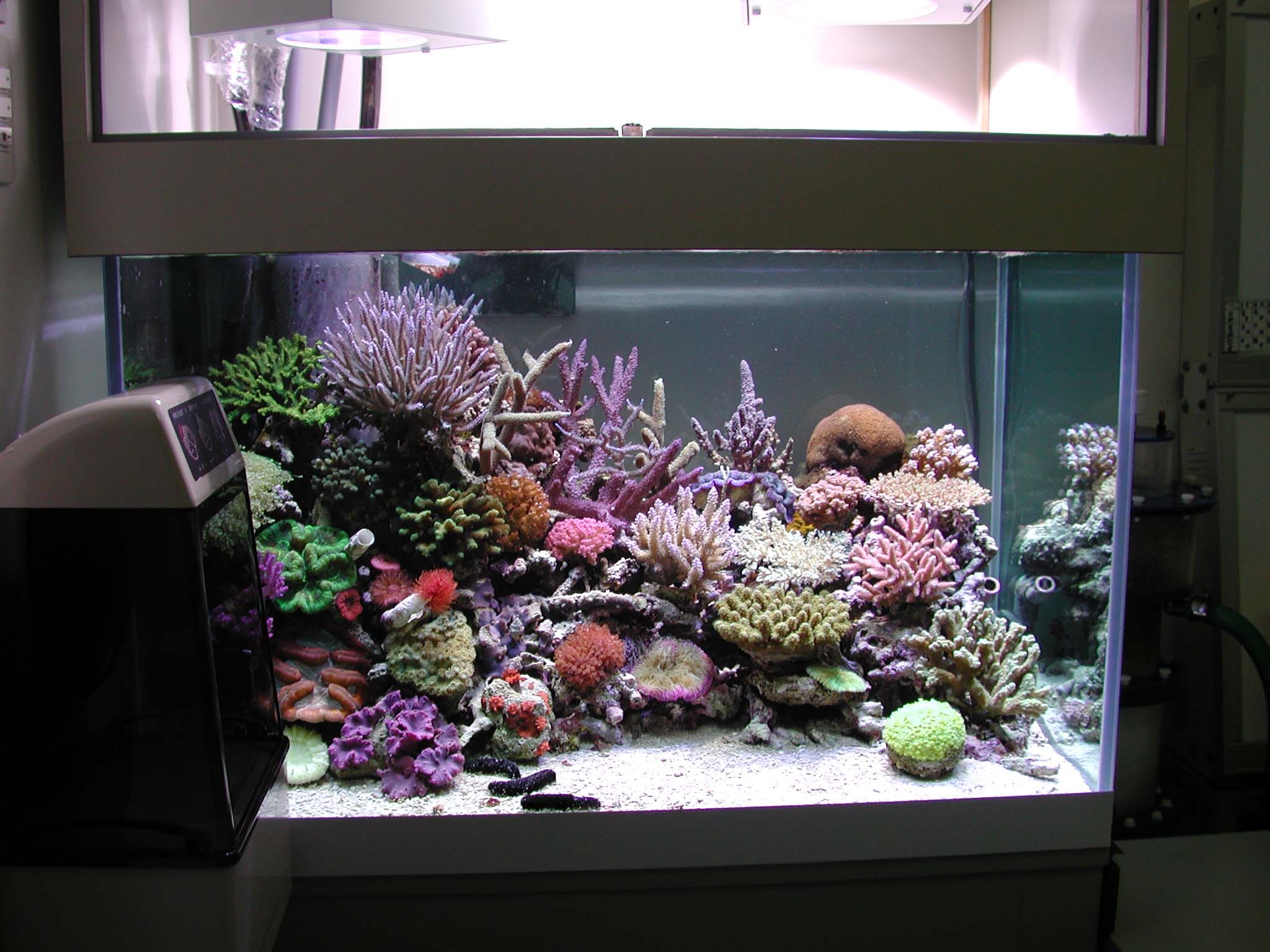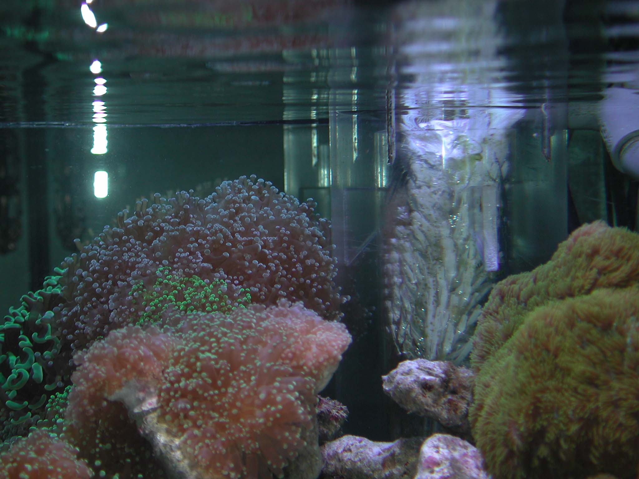 水槽の中には上記の珊瑚以外にナガレハナ、スターポリプ、ウミキノコ、ディスクコーラル、ハナガタ、ウチウラタコアシ、マメスナギンチャク、トゲイボ珊瑚、ダイノウ珊瑚、コエダナガレハナ珊瑚、エンタクミドリイシ、トサカ、インドケヤリ、他が水槽には配置されている。