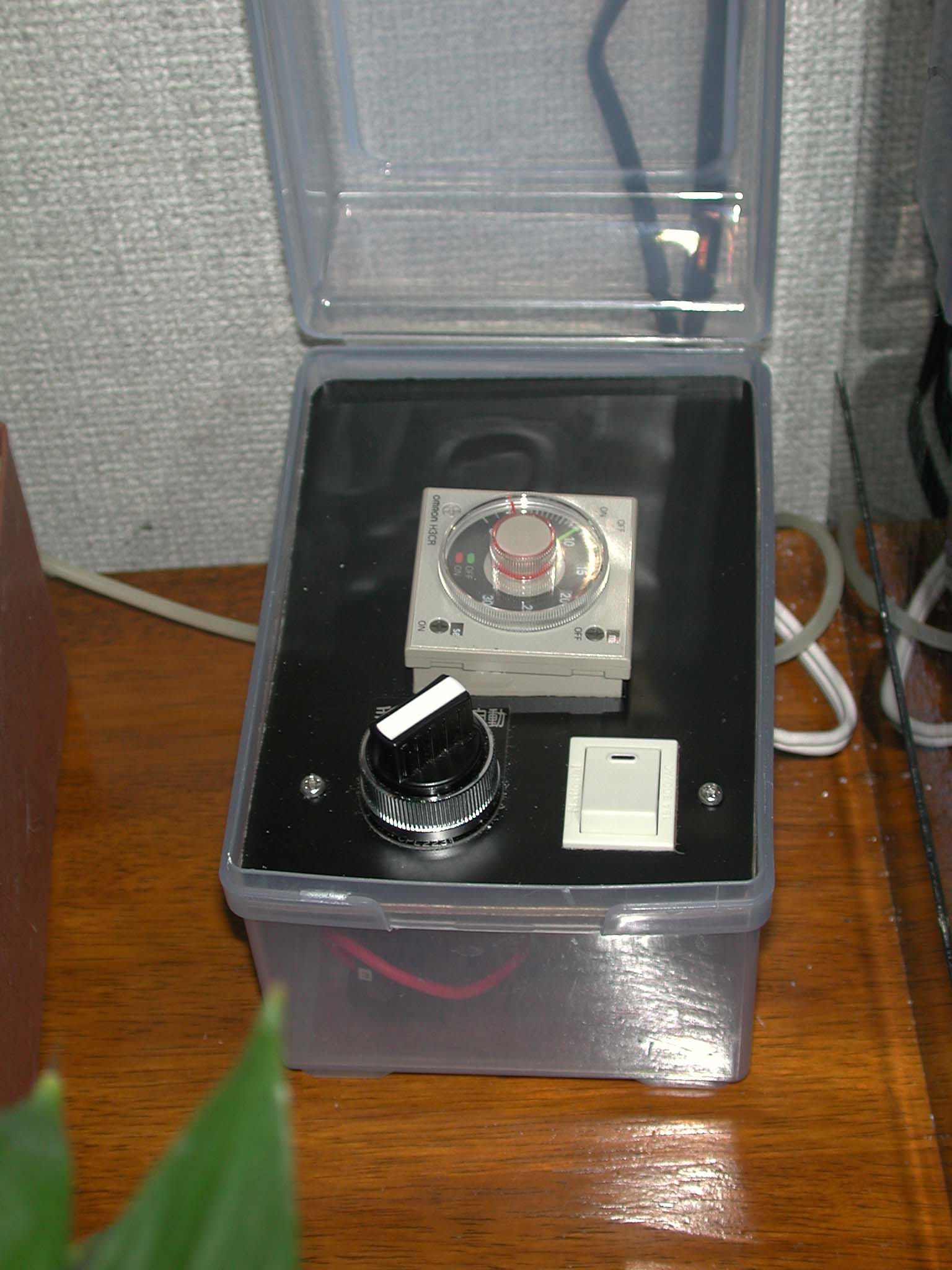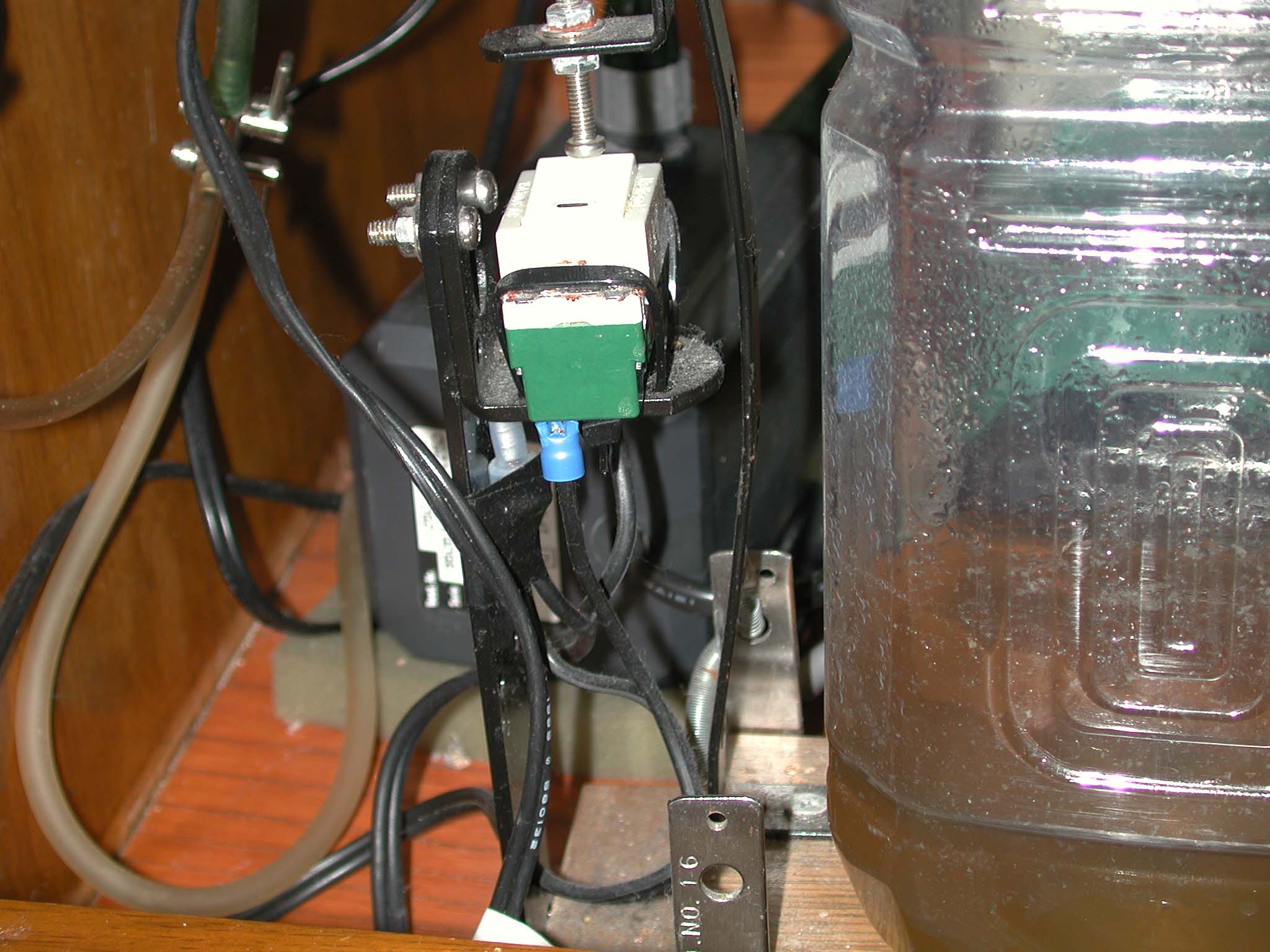 その左側にはスキマーがオーバースキミングした場合にペットボトルに汚水がたまりある程度の重量に達するとスイッチが入り自動的にスキマーがとまるようになっています。