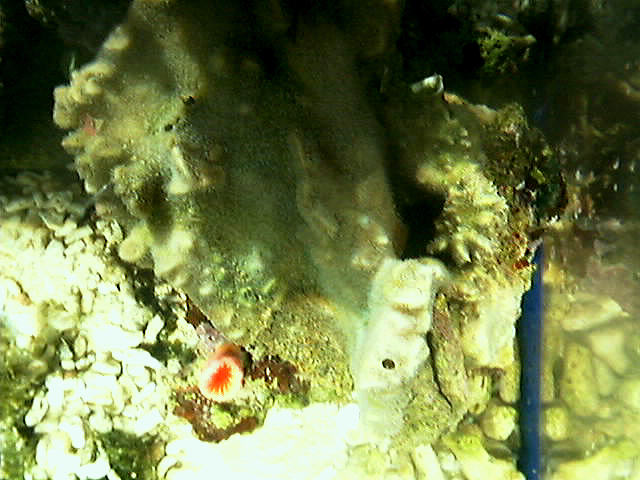 今日は異変がある。シコロサンゴの表面のこげ茶色の色が脱色しているように思われる。