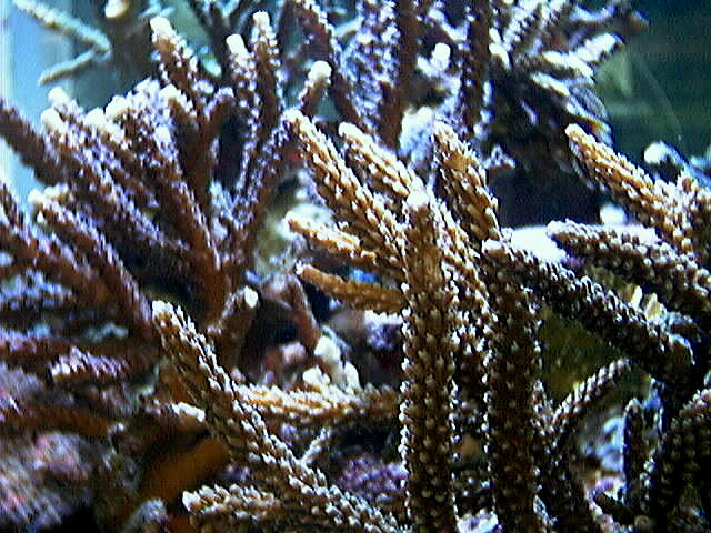 夜電気を一時着けてみて見ると一昨昨日に買ったシカツノのミドリイシは細長いポリプを出しているので十分健康な状態だと思う。