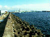 透明度50cm テトラポットには海藻がへばりついている。 ここでもいちおう磯の匂いはする。 |