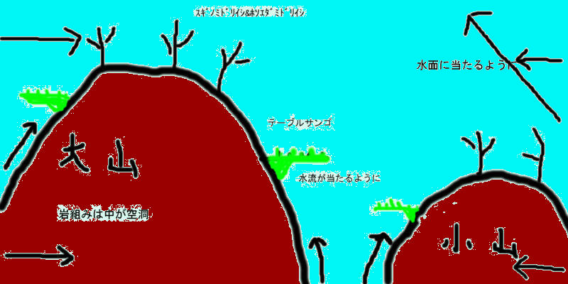 岩組みは今井さんが言ったように大きな岩と小さな岩組みになるようにしよう。
