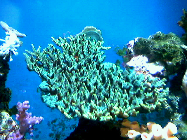 一般水槽から移してきたミドリイシは完全にメタリックグリーンになった。