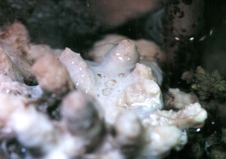 これは前回のとおなじようなヤッコアミメ珊瑚の表面にでてきたカビのようなものではありません。