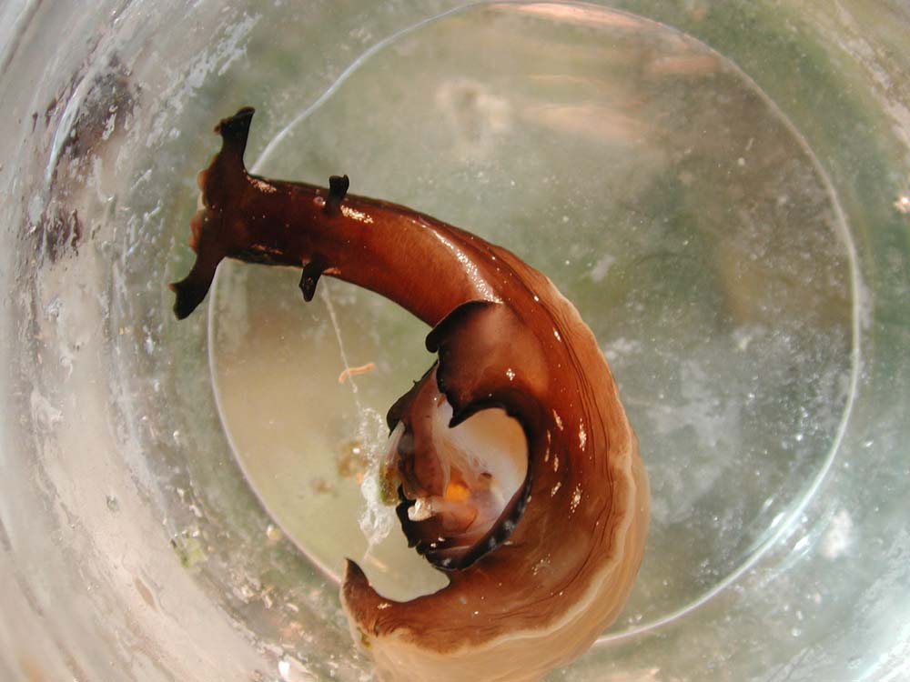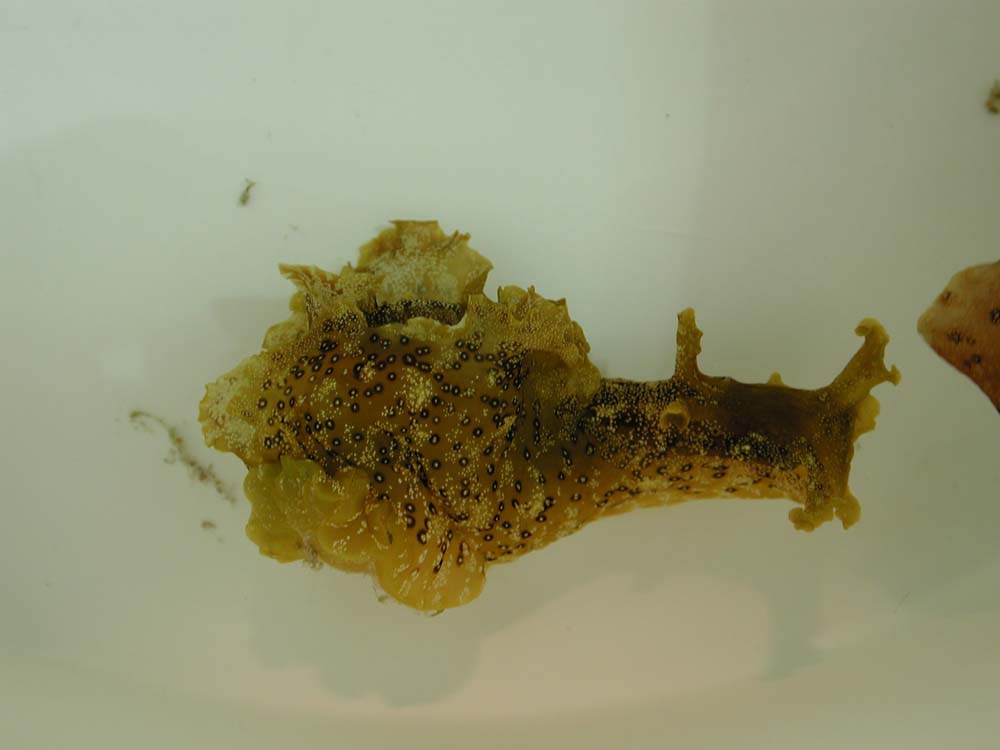 | クロヘリアメフラシ ポイントNで採集 水槽に搬入行方不明 カニに食べられたのか? |