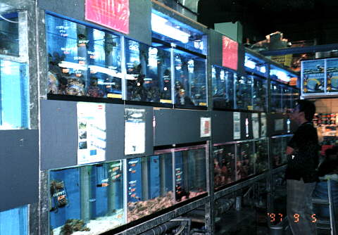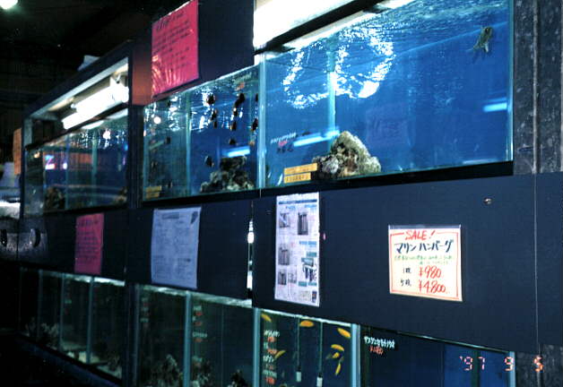 高価な魚は専用のクーラーが付いていましたがその他の水槽は室内空調のみで調節していました。