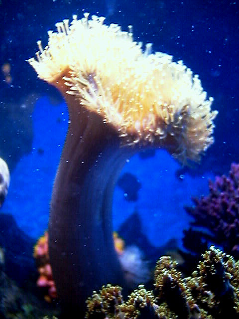 簡単 | 餌はアマエビ、イカ、冷凍のブラインシュリンプ、クリル、ブラインシュリンプの幼生、等ほとんど何でも食べます。 太陽光線が必要ではなく積極的に固形の餌をあげましょう。液状の餌は不可! しかしあまり餌をやりすぎると触手が伸びなくなりそれでもやり続けるとやがて溶け出してきます。 水温に関してはそう高い温度出なれけば持ちますが基本的には25度以下が良いみたい。 出来れば何かのライブロックに固定した方が成長速度は良いようだ。 毎日動かしていると良くないようだ。 脇から子供が出てきたら積極的に子供の方に餌を上げると早く子供が大きくなる。 触手の色は一般的な黄色と緑がある。 またこの珊瑚は水流に依存する比率が大きいので少し強めの水流が必要。 思っているよりも少し強めの水流が必要です。 このサンゴが調子が良いか悪いかの判断基準は咲いた時の触手の状態で判断が出来る。 1番良い時はピット伸びた触手が先端にむけて細くなっていきしかもその触手の中には丸い点々(紋様)がはっきり見える。 2番の時は丸い点々が見えない。 3番め時は触手がだらしなく伸びる、そして先端に行っても針のように細くならなく神経が届いていないように鈍くなってくる。 4番目触手は伸びるがもう粘液状ではなくて触手に食べ物が触れてももうつかむ事が出来ない。 |