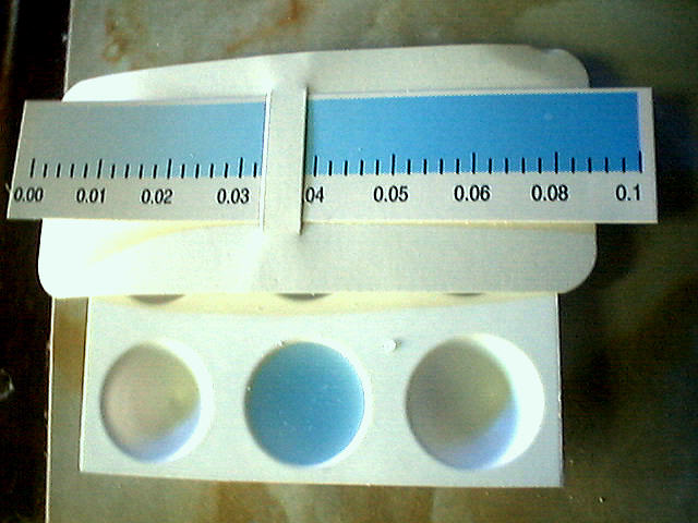 すこし時間が経ってしまったのと光線のかげんで少し薄く見えますが0.06ppmの周辺です。